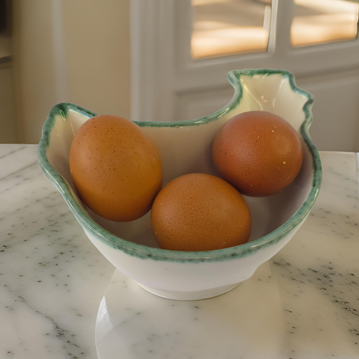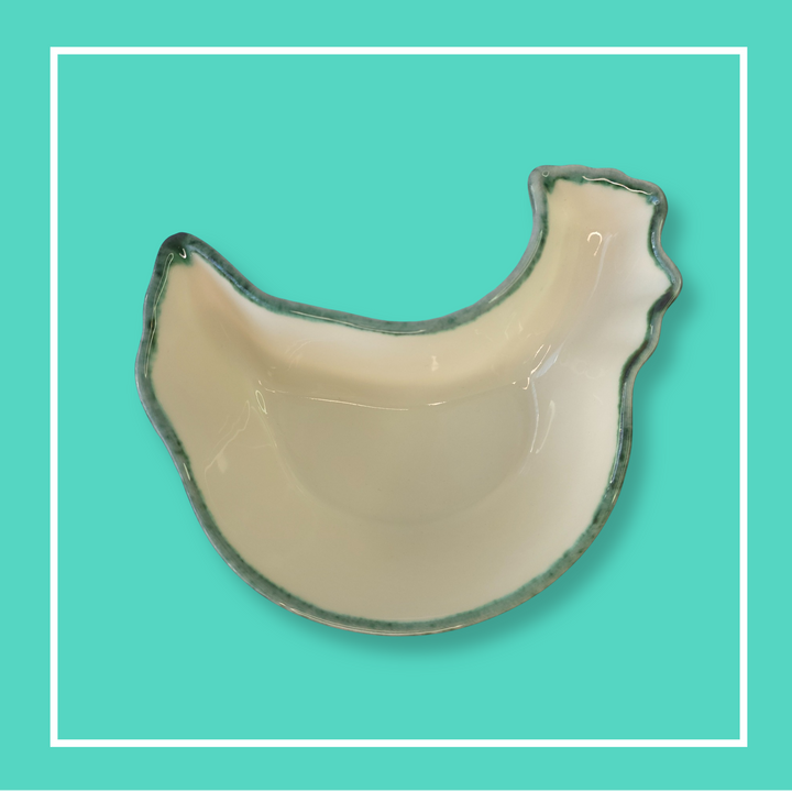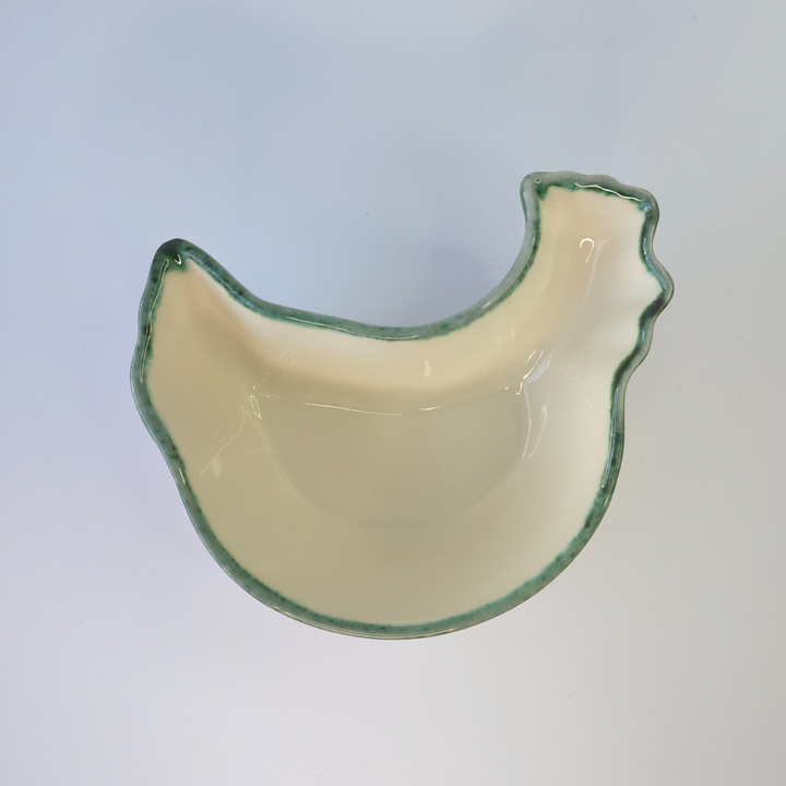 Bowl forma de gallina toque verde. 15 cm ancho x 6 cm alto